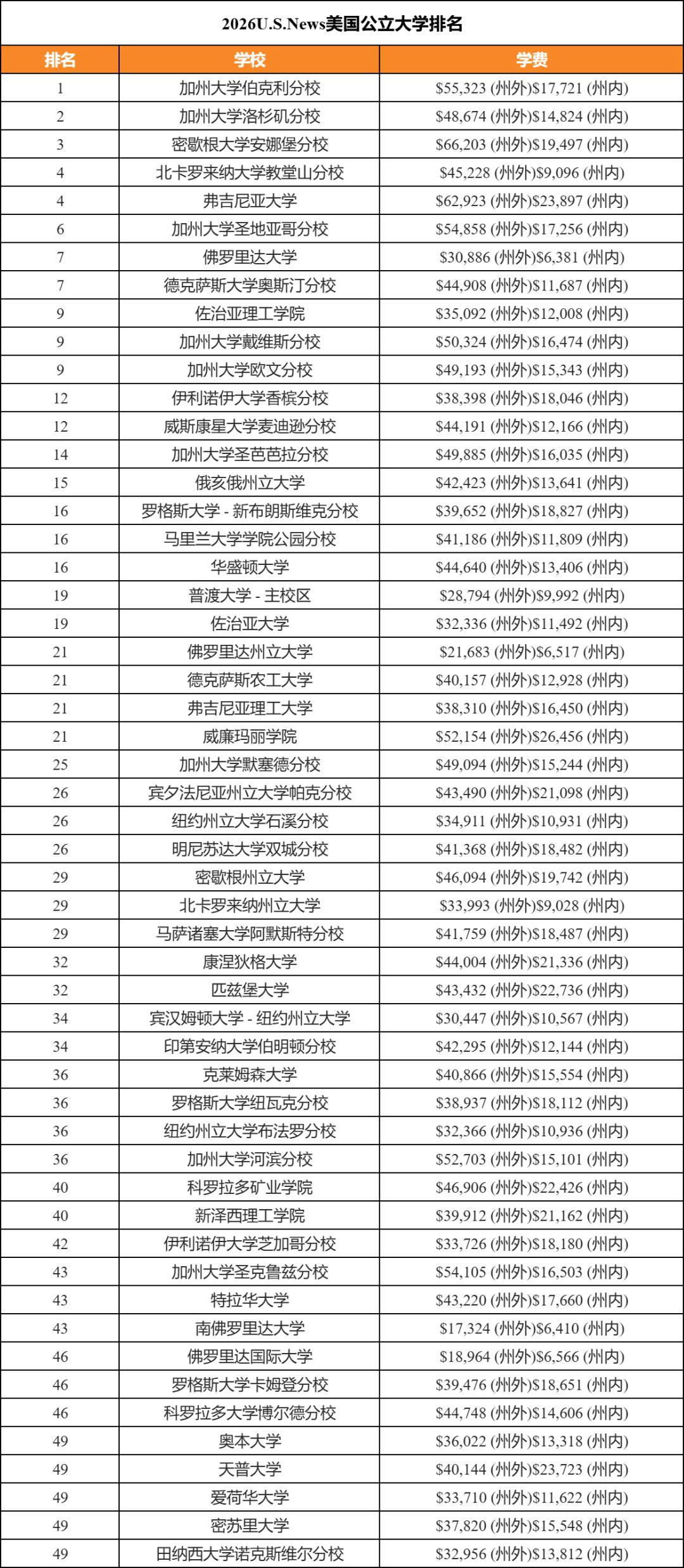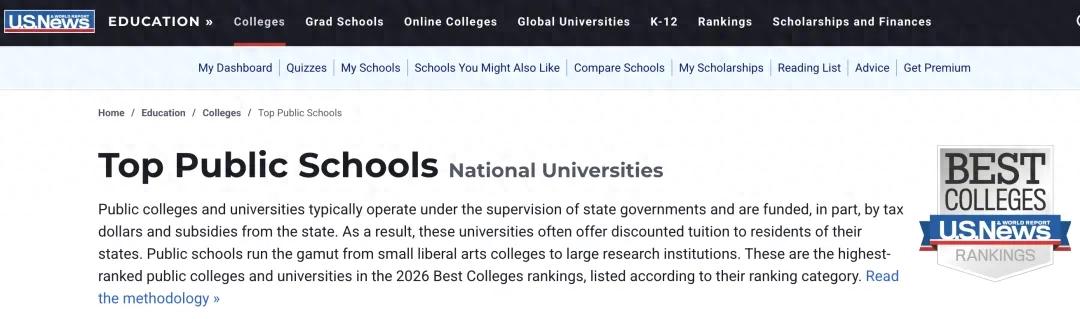 近日,U.S.News 发布了最新的 2026 全美**公立大学排名!