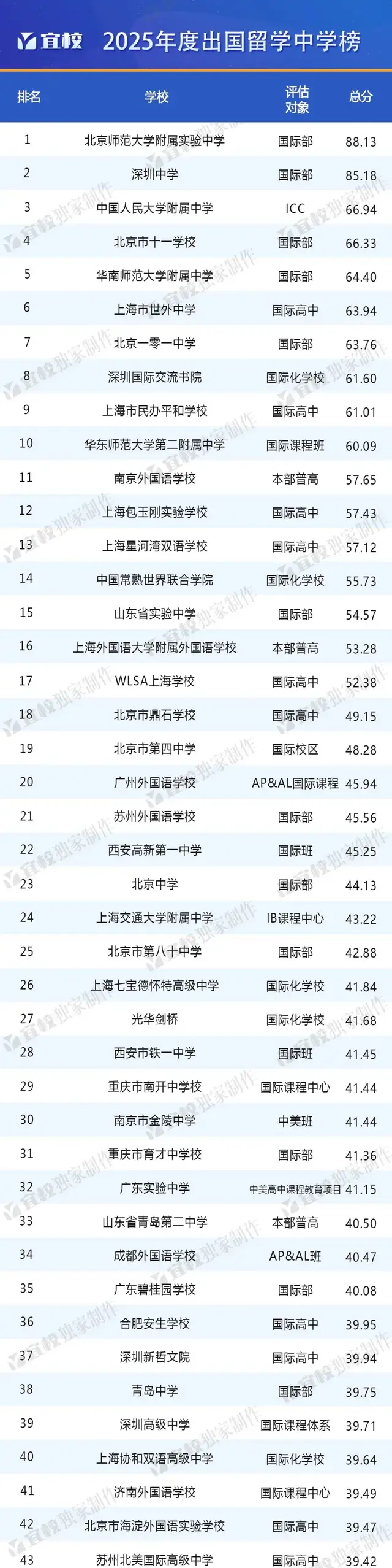 近日宜校发布了《2025年度出国留学最强中学榜单》,这也是该机构连续第十年推出此排名。