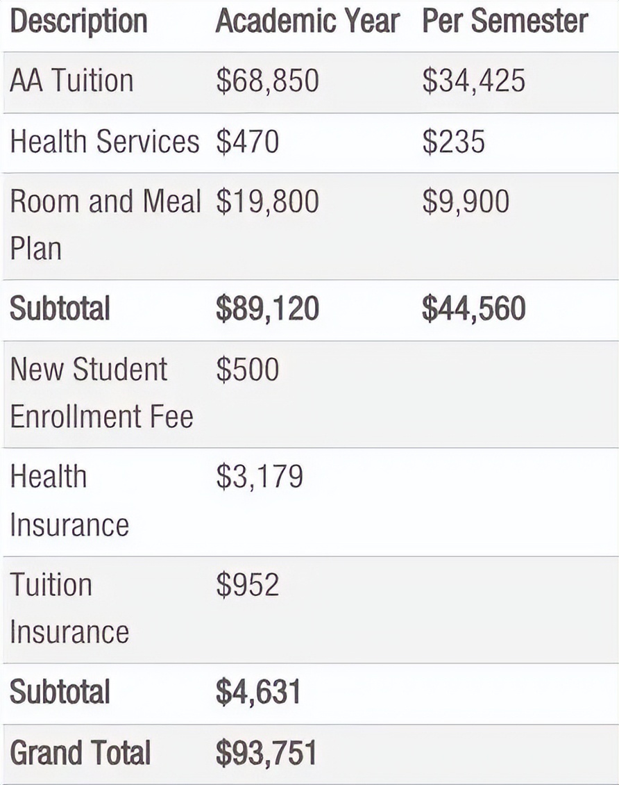 佩珀代因大学:光学费就71,860美元,再加上吃住行、书本费这些,总费用直接冲破10万大关 ——101,450美元(换算成人民币约70万了)!