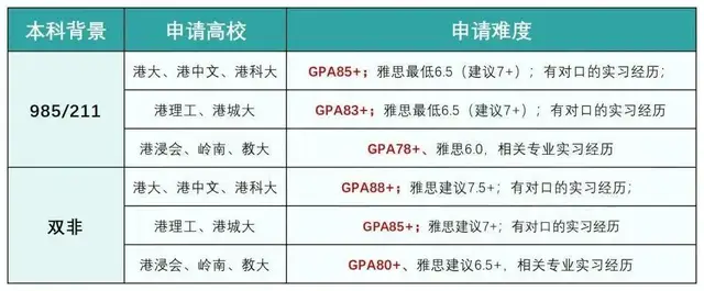 总体而言,申请港硕的上岸难度相较于内地考研会稍低一点,不过若想进入香港的名校攻读,依然存在一定挑战。以香港较为知名的八大院校为例,按院校申请难度划分,大致情况如下: