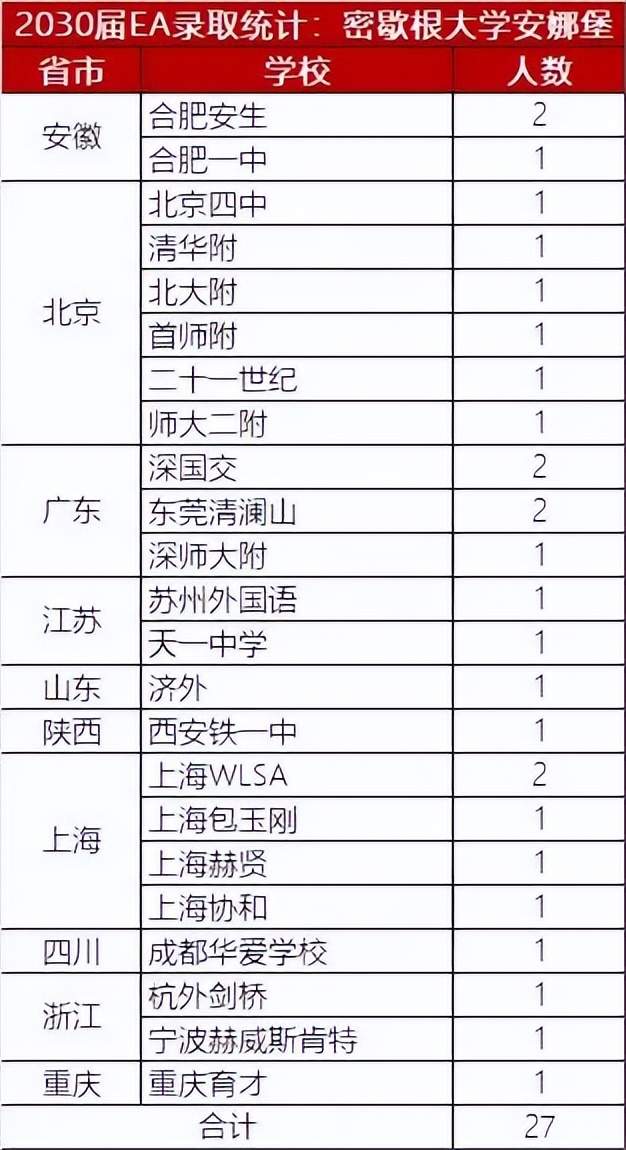 截止发稿,密歇根大学安娜堡在大陆校EA批次录取27枚,分别来自: