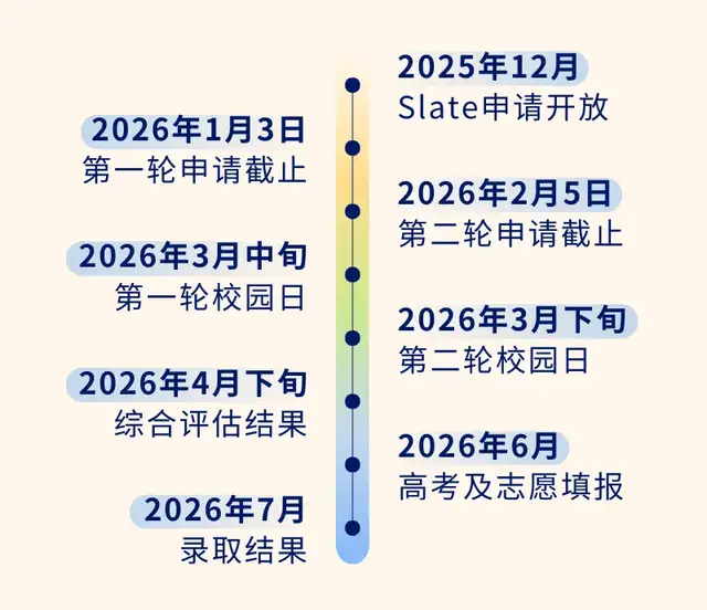 2026年入学有两个申请轮次,截止日期分别是2026年1月3日和2月5日,两个轮次的申请分别对应3月举办的多场次的校园日活动参加时间。