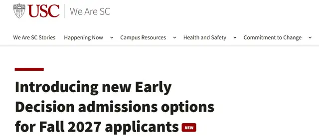从2027-2028学年(即2027年秋季入学申请)开始,南加州大学将为绝大多数本科项目(部分艺术学院除外)新增 "ED" 申请通道。