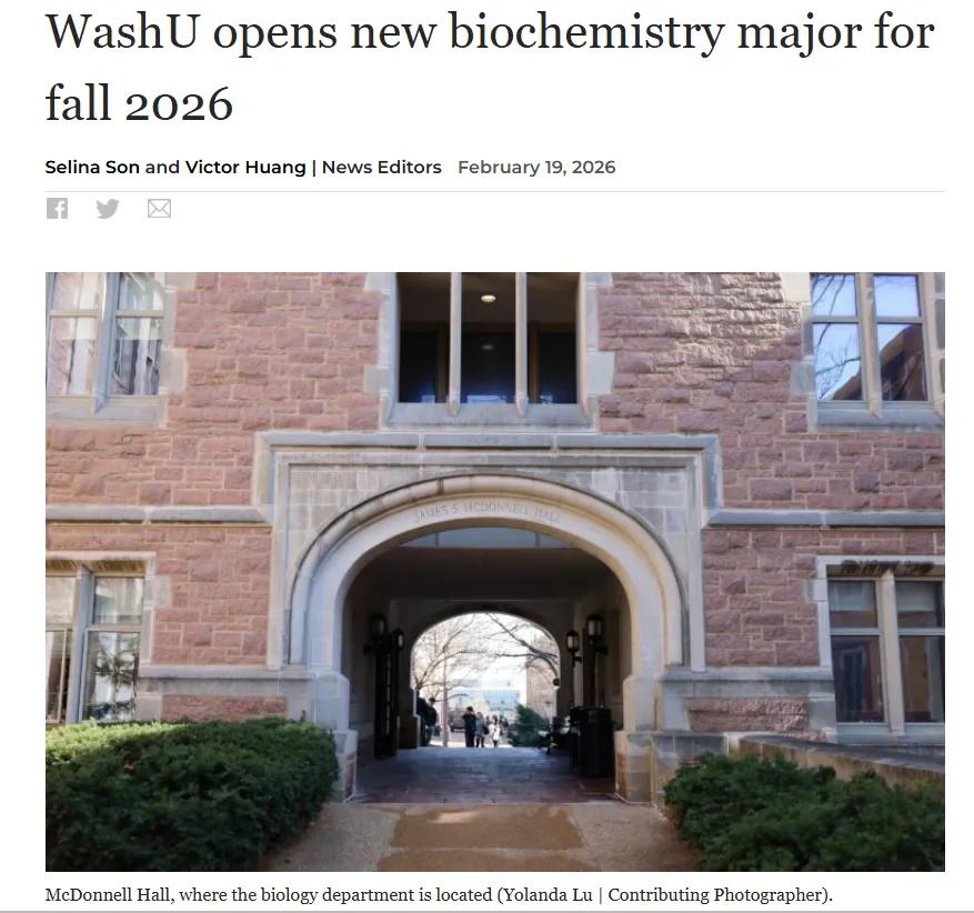近日,圣路易斯华盛顿大学官宣:2026年秋季,将正式开设全新的生物化学联合专业(joint biochemistry major)!