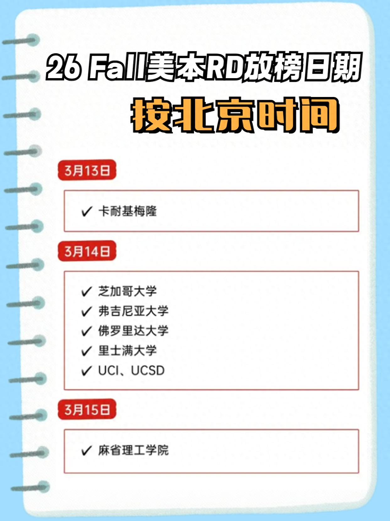如果说ED是各位大佬之间的厮杀,那么RD就是一场全民参与的抽奖。在已经到来的3月,我们即将迎来一大波2026Fall RD放榜通知。