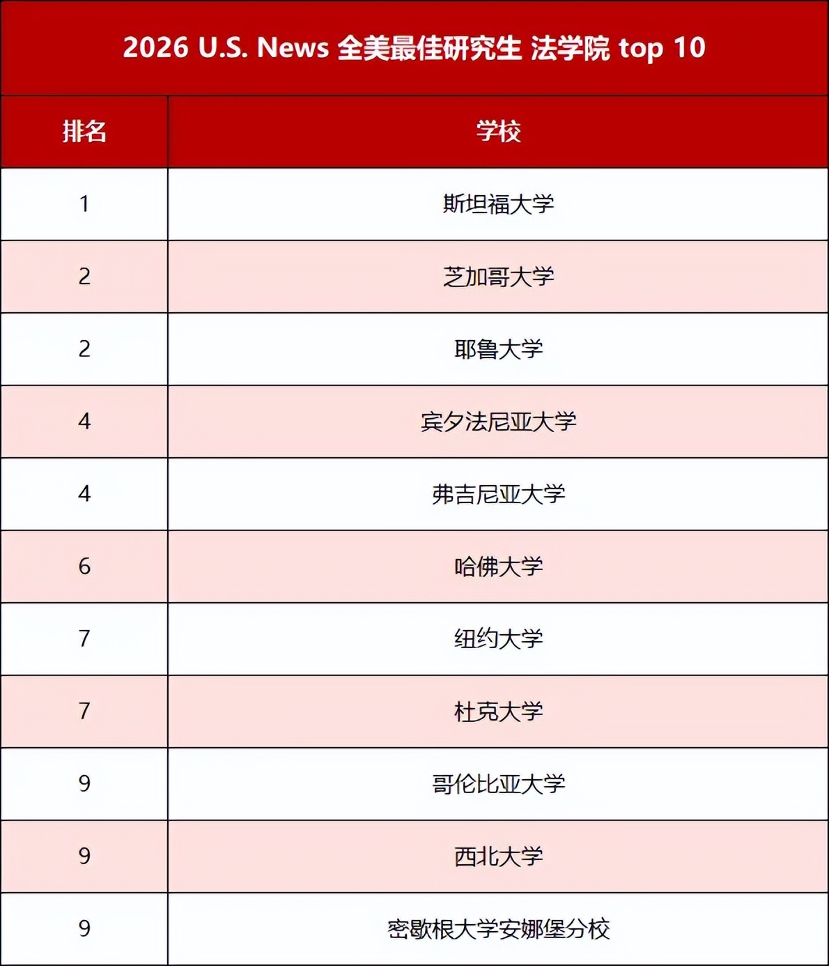 法学院头部梯队依旧稳固,顶尖名校竞争激烈: