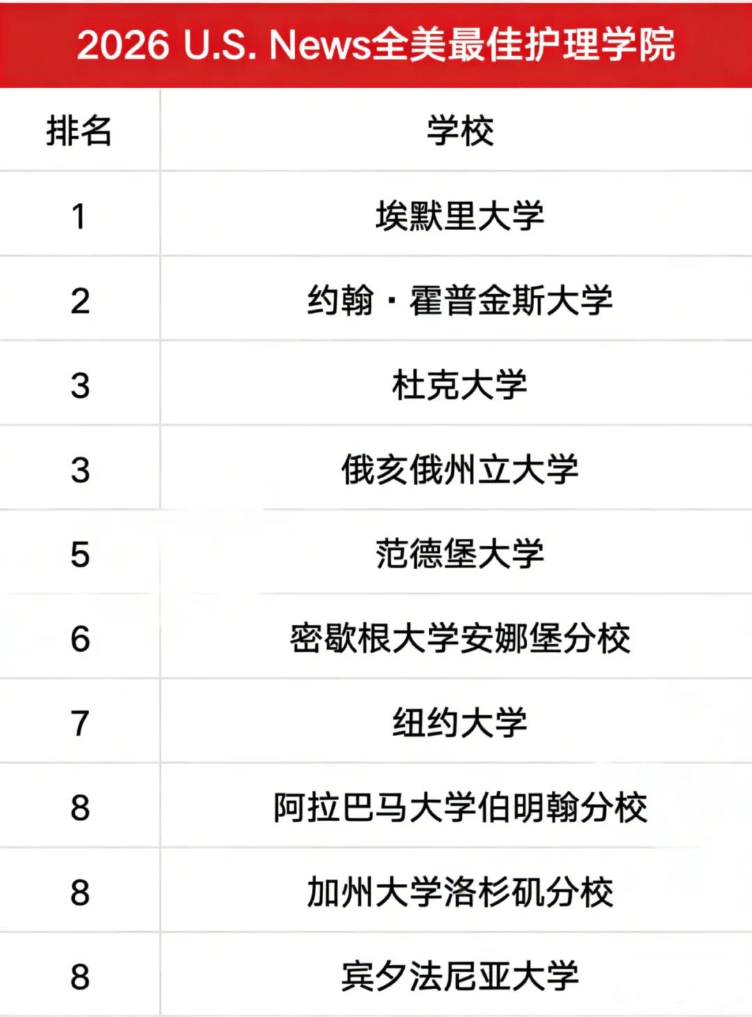 埃默里大学和约翰斯·霍普金斯大学,分别位列今年护理硕士项目排名第1、第2;