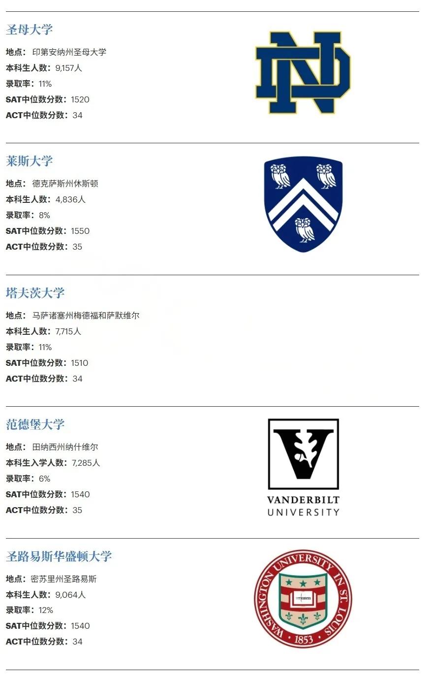 排除了8大藤校(普林斯顿大学、哈佛大学、耶鲁大学、宾夕法尼亚大学、康奈尔大学、布朗大学、达特茅斯学院、哥伦比亚大学),以及“藤校+”(麻省理工学院、斯坦福大学、杜克大学、芝加哥大学、约翰斯·霍普金斯大学)。